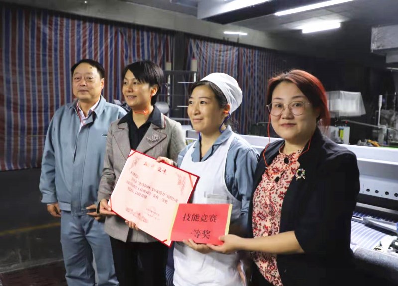 在此次“建功新時(shí)代、發(fā)展我助力”紡織行業(yè)女職工技能競(jìng)賽上,華茂集團(tuán)組織工作得力,榮獲優(yōu)秀組織獎(jiǎng)。華茂集團(tuán)參賽員工表現(xiàn)出色,一分廠白羊和潛山公司丁友苗分別獲得細(xì)紗擋車一、二等獎(jiǎng);織染公司祁桃花、楊征分別獲得織布擋車一、二等獎(jiǎng)。焦主席在頒獎(jiǎng)的時(shí)候勉勵(lì)她們要不忘初心、牢記使命,再接再厲,繼續(xù)在崗位上爭(zhēng)先創(chuàng)優(yōu),創(chuàng)造出新業(yè)績(jī)。