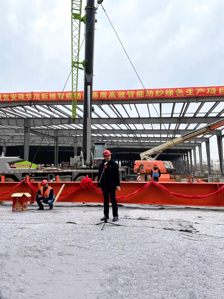 新年伊始,安徽華茂新維公司高質(zhì)高效智能紡紗綠色生產(chǎn)項目建設(shè)就傳來喜訊,1月10日,在第二工業(yè)園項目建設(shè)工地上舉行了項目主廠房大梁合攏典禮,隨著安徽華茂集團黨委書記、董事長、總經(jīng)理倪俊龍的一聲“合攏”令下,該項目順利地完成了主廠房大梁合攏,進入了下一個施工階段。集團領(lǐng)導(dǎo)班子成員,施工單位負責(zé)同志以及集團各單位、各部門代表見證了這一喜慶時刻。